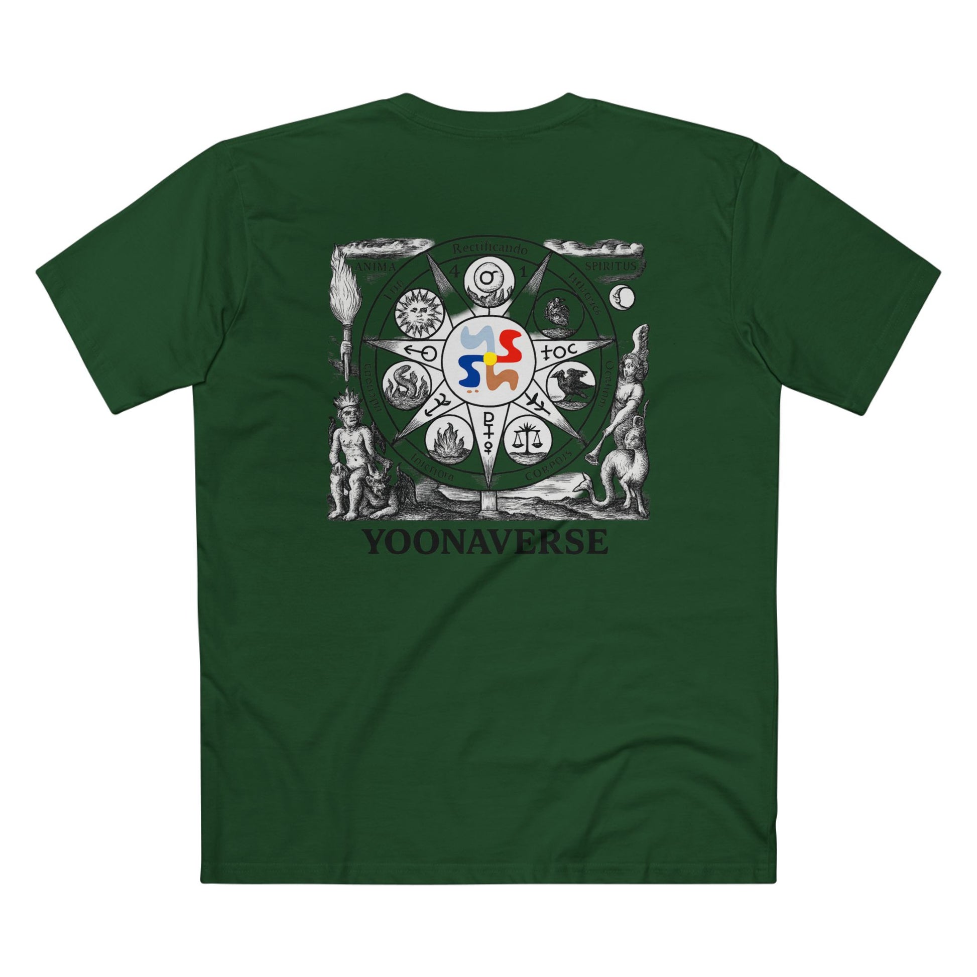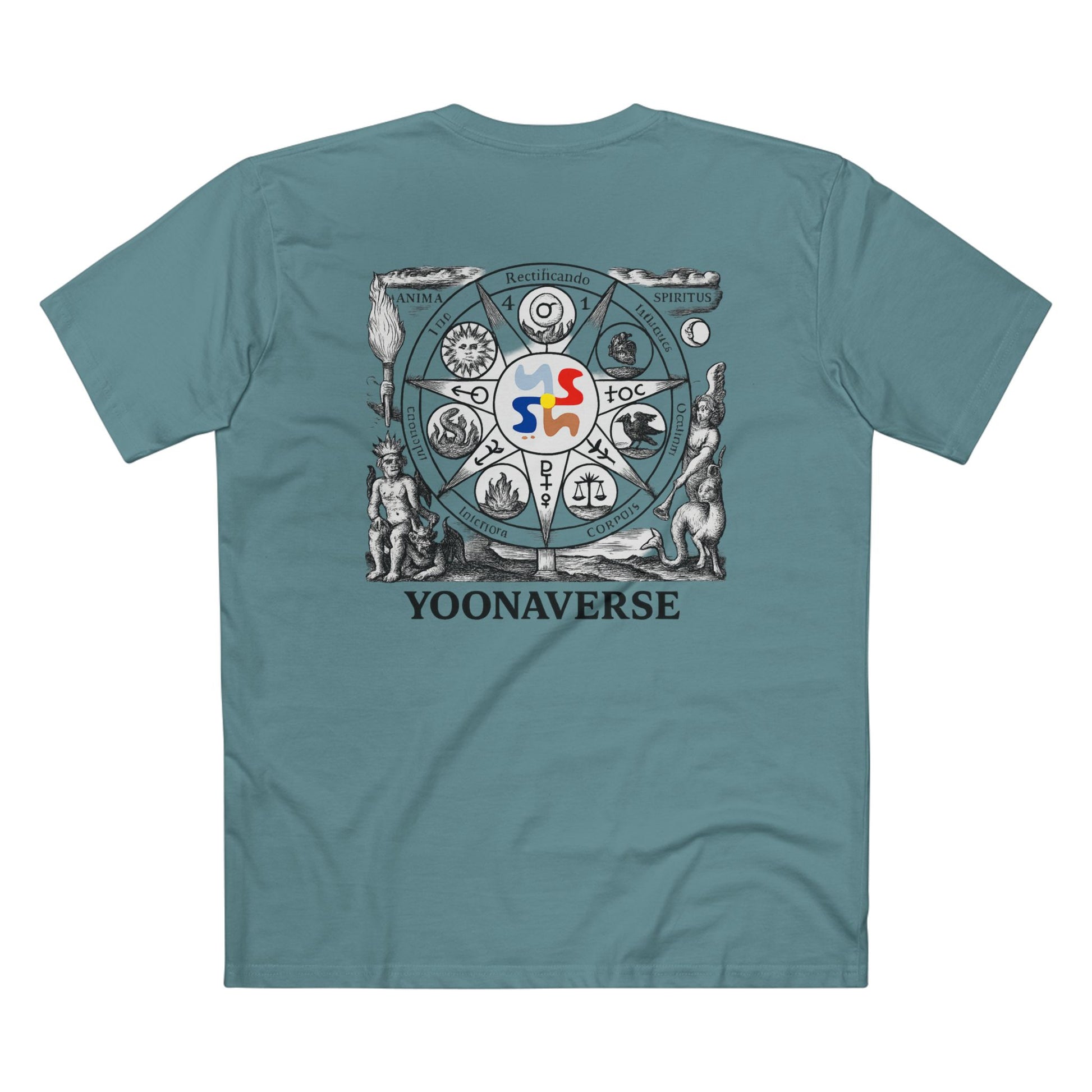 Unlock the power of mystic design with the Yoonaverse Alchemical Starwheel Tee—where timeless symbolism meets modern streetwear. This piece features our sacred alchemical mandala printed in high resolution across the back, with the Yoonaverse emblem sealed at its center—an ancient symbol reimagined for a new age of style and consciousness.