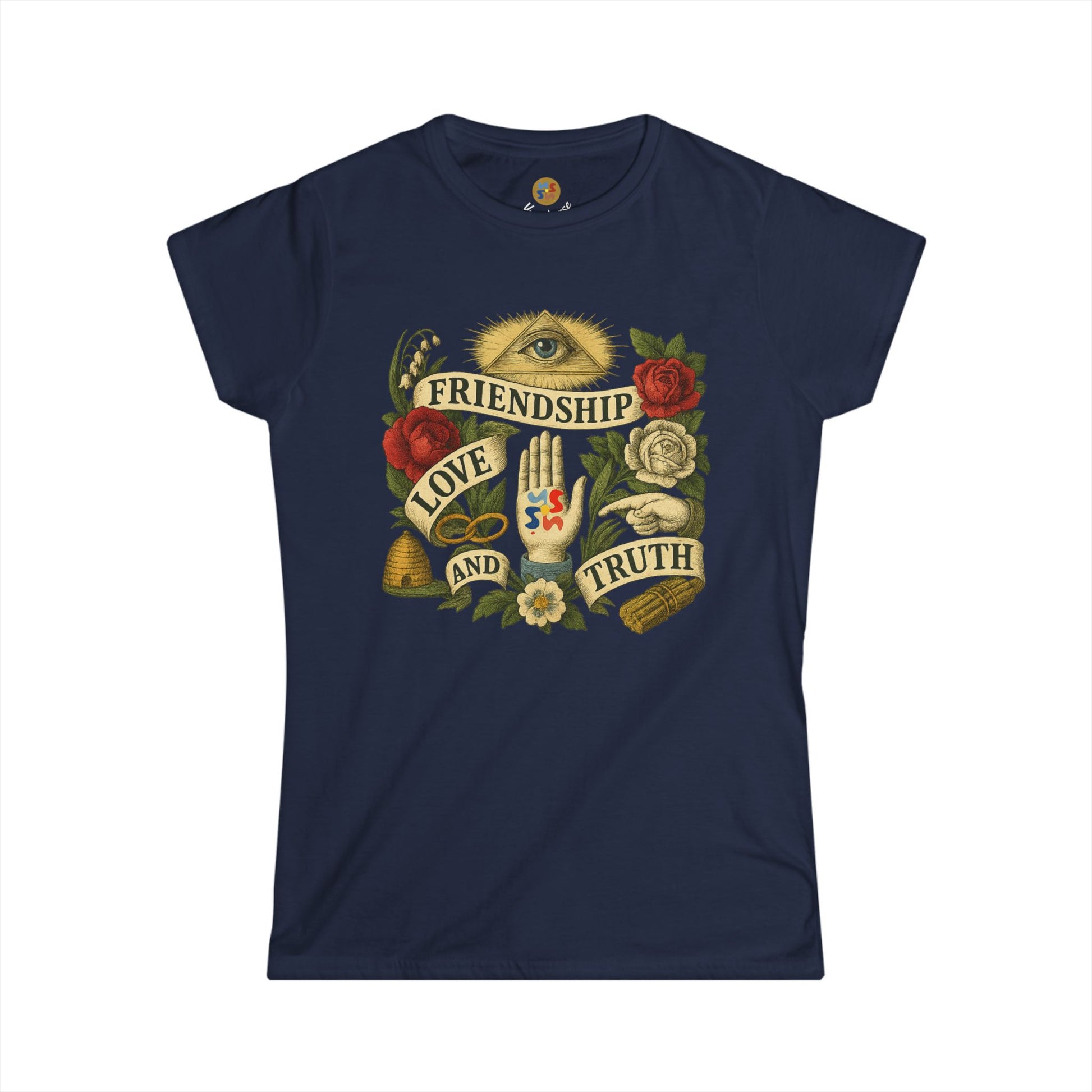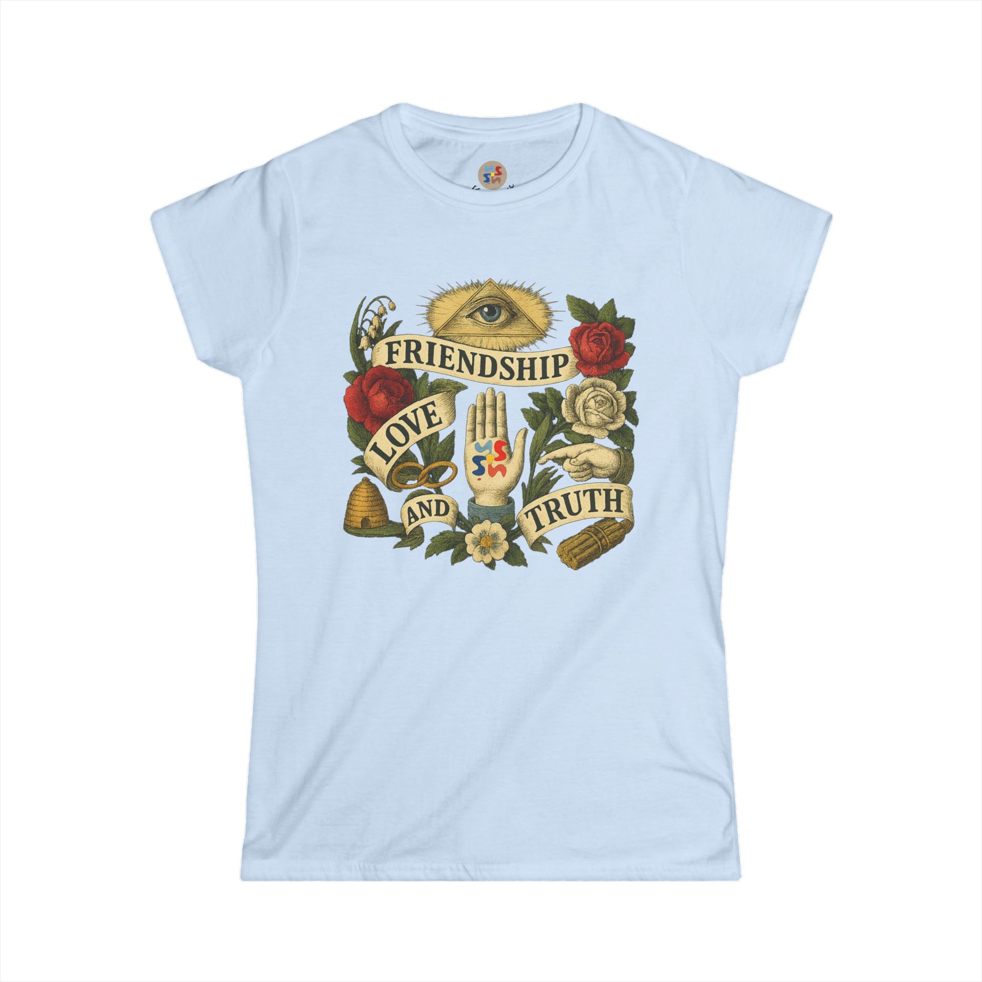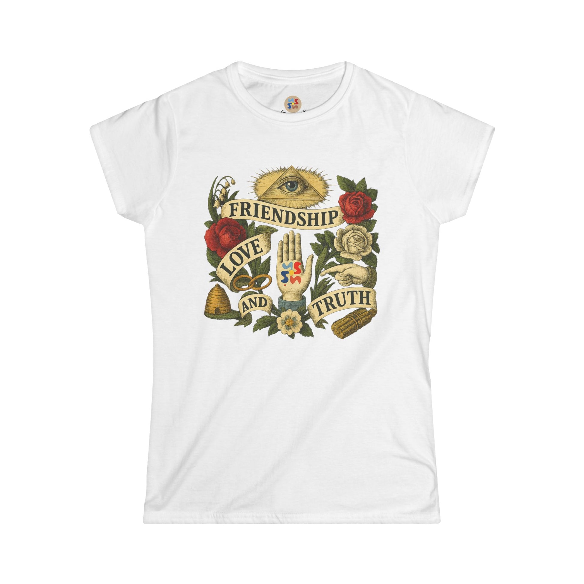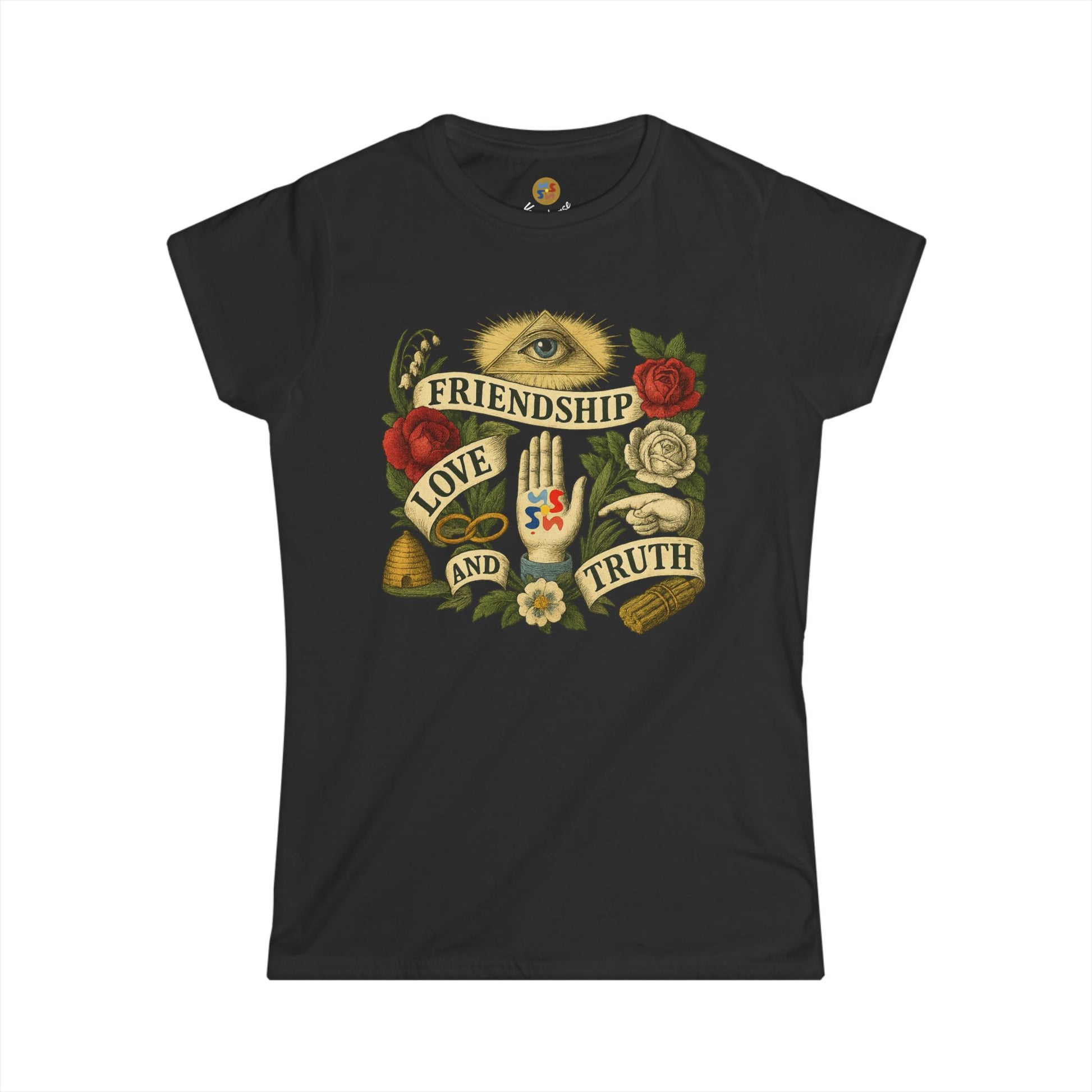 Celebrate the power of connection and expression with the Friendship, Love & Truth Tee—a soft, stylish piece designed for the modern muse. This artistic tee features an intricate design inspired by timeless values and symbolic beauty, blending vintage charm with contemporary spirit.