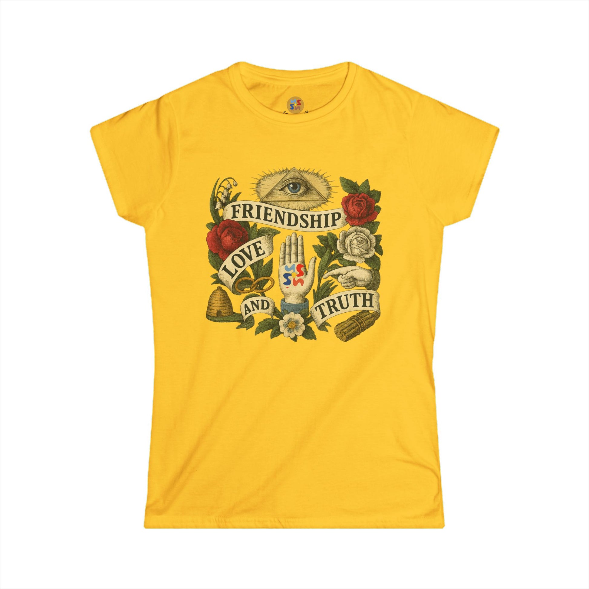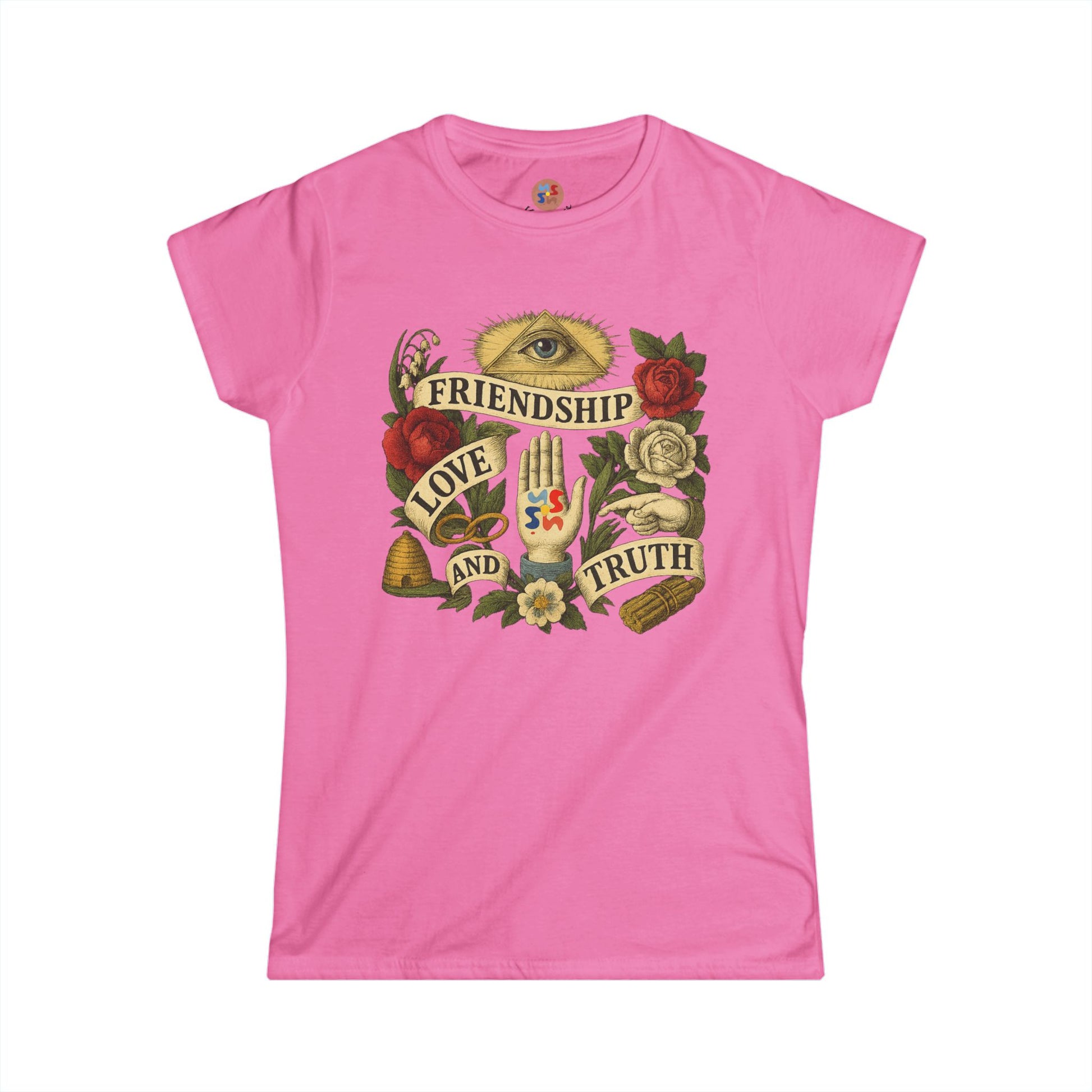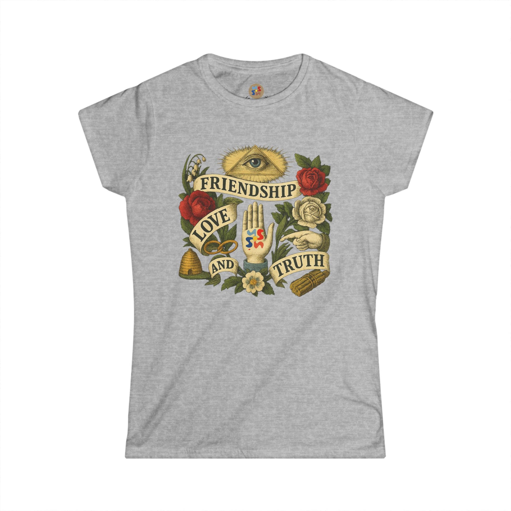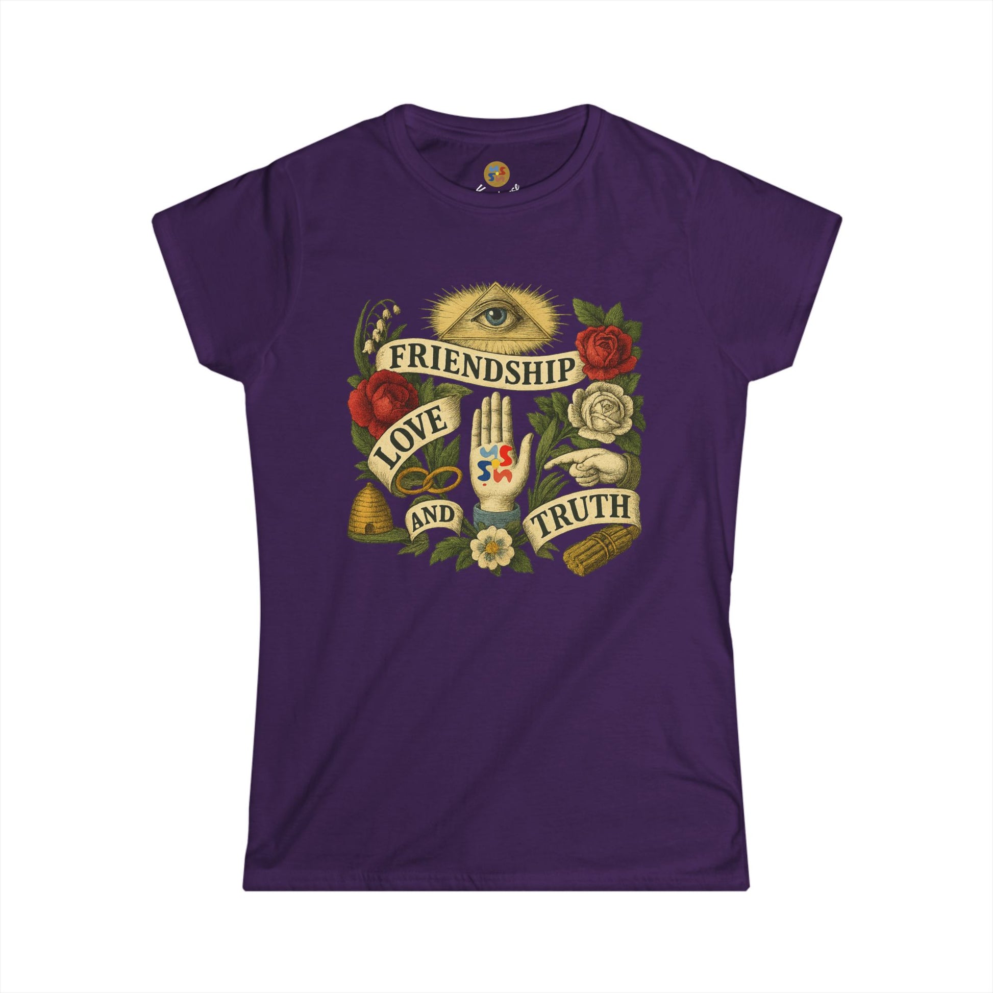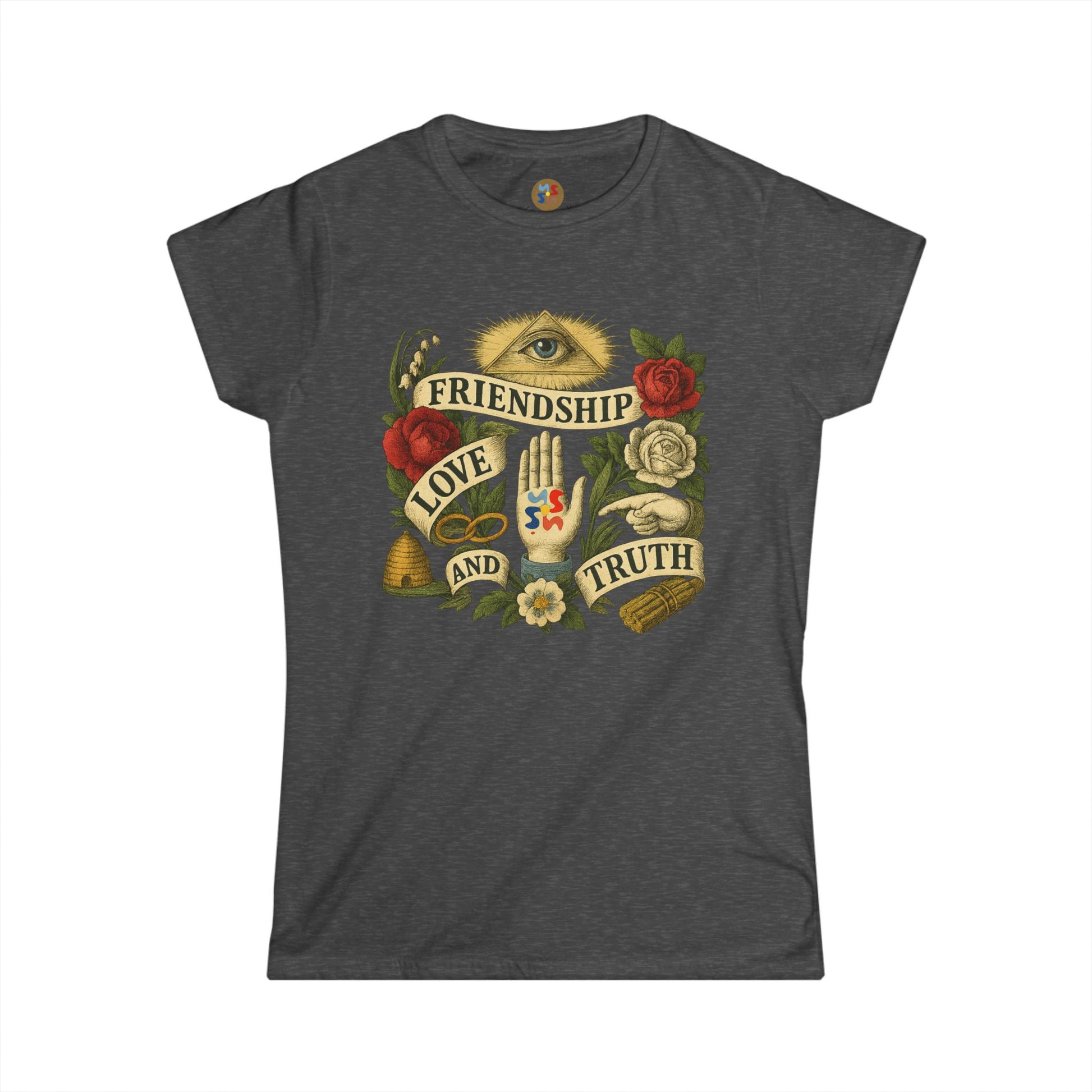 Celebrate the power of connection and expression with the Friendship, Love & Truth Tee—a soft, stylish piece designed for the modern muse. This artistic tee features an intricate design inspired by timeless values and symbolic beauty, blending vintage charm with contemporary spirit.